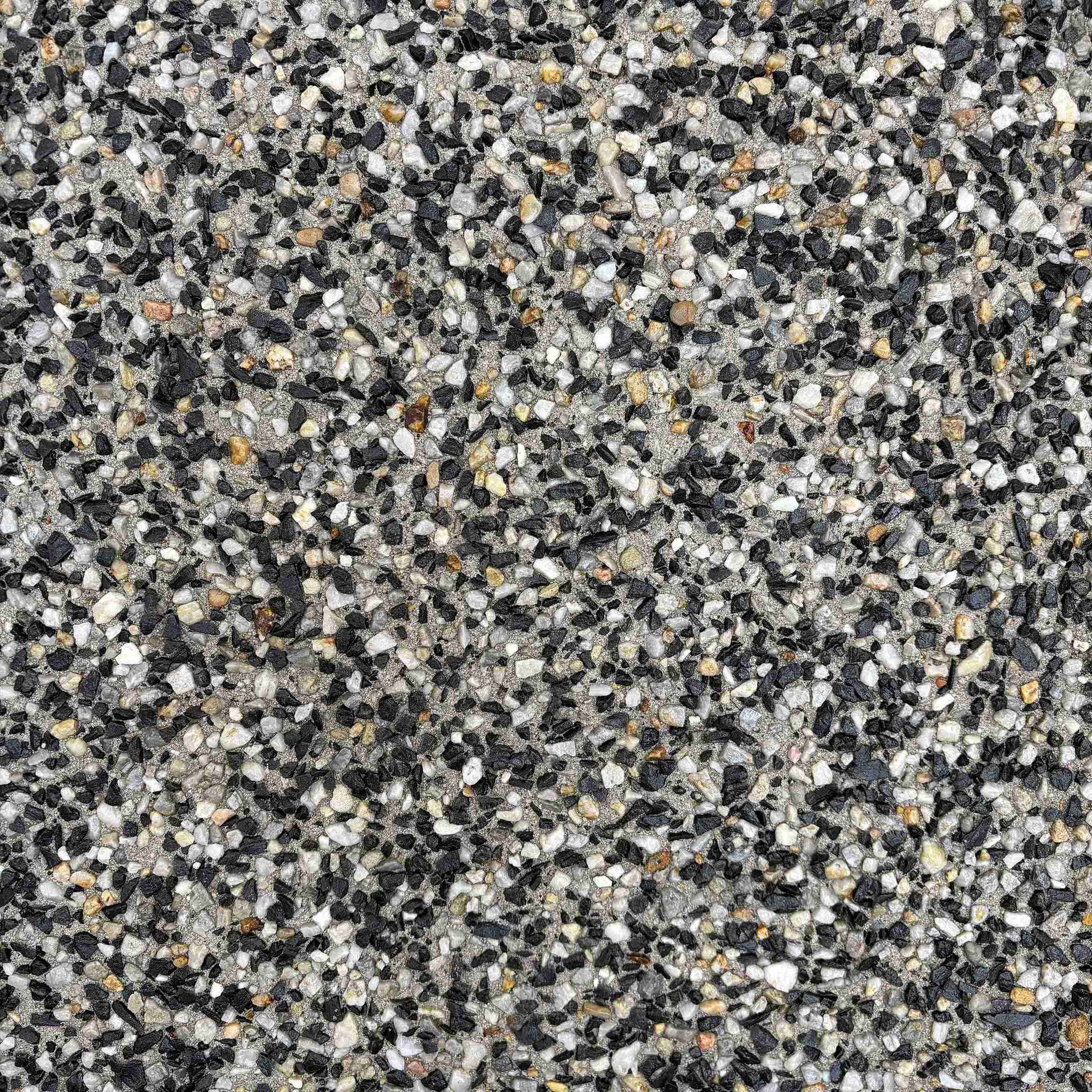 Aggregate Composition: A light grey base with brownish aggregates and a high percentage of black stones for a bold contrast.